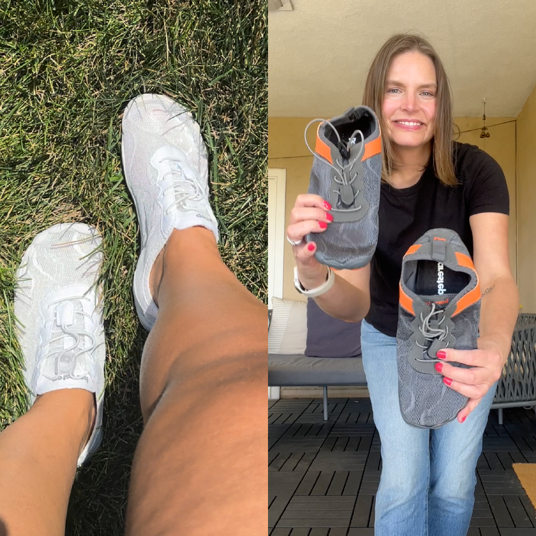 Barefoot shoes are shoes that try to mimic walking barefoot. They have very thin, flexible soles and give your toes lots of room to spread out.